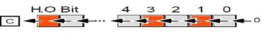- The carry flag contains the last bit shifted out of the L.O. bit of the operand.