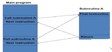 - Whenever we need the subroutine, a single instruction is inserted into the main body of the program to call a subroutine.