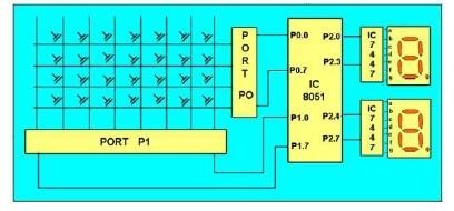 To check the row of the pressed key in the keyboard, one of the rows is made high by making one of the bits in the output port 8051 high. This is done until the row is found out. Once we get the row next our job is to find out the column of the pressed key. The column is detected by contents in the input ports with the help of a counter. The content of the input port is rotated with carrying until the carry bit is set.