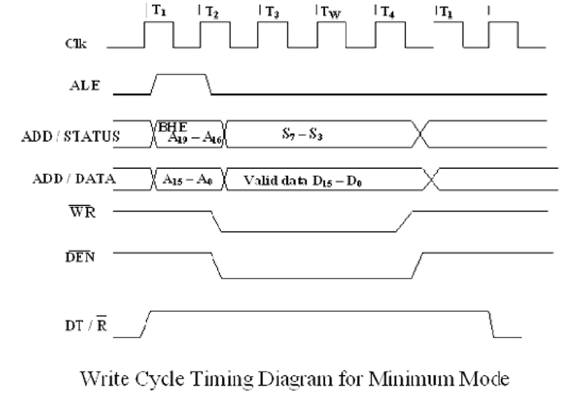 - Here the only difference in the timing diagram between minimum mode and maximum mode is the status signals used and the available control and advanced command signals. •R0, S1, and S2 are set at the beginning of the bus cycle.8288 bus controller will output a pulse as on the ALE and apply a required signal to its DT / R pin during T1.