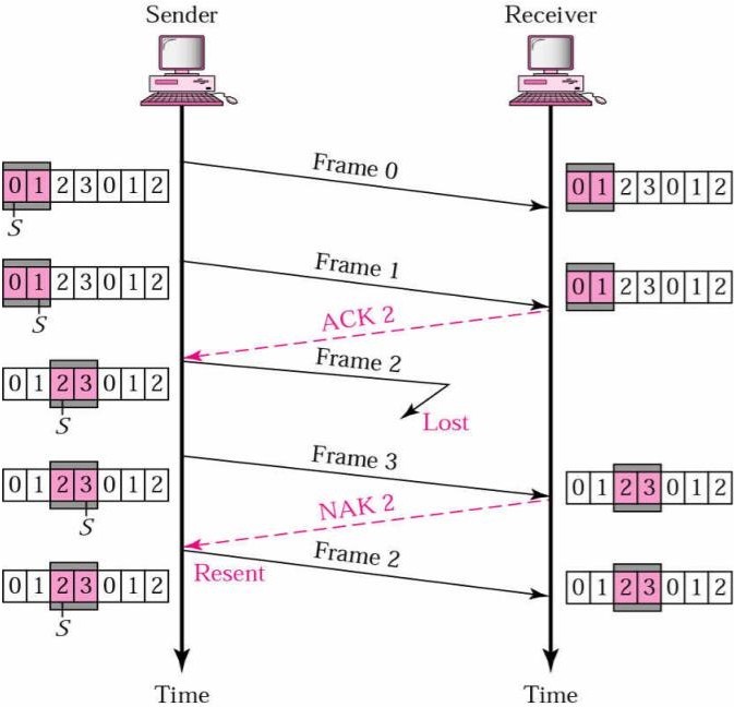 The selective-repetitive ARQ scheme retransmits only those for which NAKs are received or for which timer has expired. This is the most efficient among the ARQ schemes, but the sender must be more complex so that it can send out-of-order frames. The receiver also must have storage space to store the post NAK frames and processing power to reinsert frames in proper sequence.